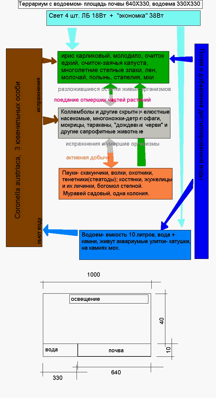 Примерная схема террариума в котором поселились муравьи, с описанием его обитателей и кратким чертежом: