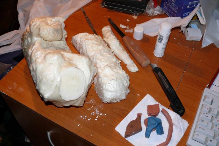 Походив по знакомым надыбал пару кусков застывшей пены и принялся за работу.