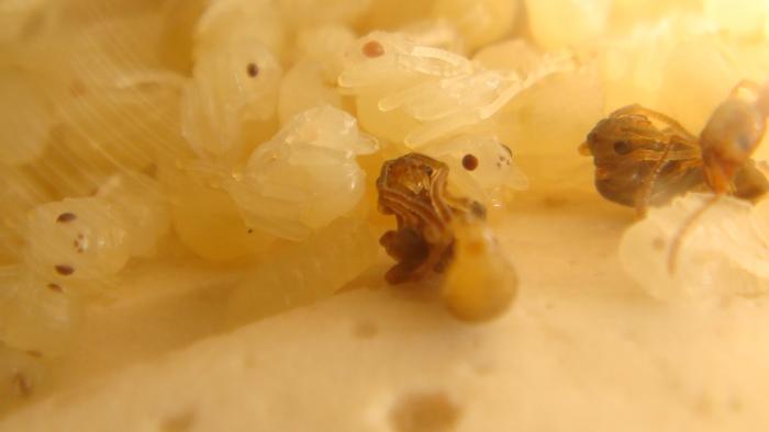 вы явно что то путаете!! мирмику агресивные существа и лазюки бы так спокойно бы не бегали, А как вы опрделили что яйца и личинки лазюка??