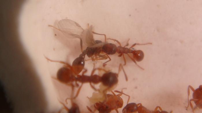 я слышал что у мирмиков может происходить оплодотворение и внутри муравейника(может я и ошибаюсь), а матки крылатой у вас не появлялось?