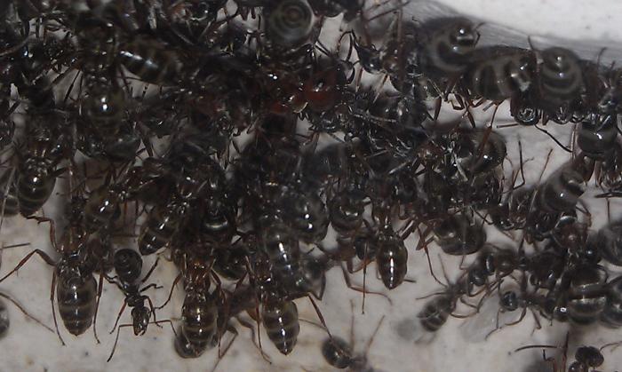 И так держал амазонок при слабом освещении около трех недель. В течении всего этого времени не одна амазонка не покинула своего гнезда, но стоило подключить лампу как амазонки тут же оживились осматривая уже знакомые угодия . Хочу заметить также, что сами рабы вели себя нормально, а вот амазонки (даже молодые особи ) демонстрировали предзимовочное состояние сбиваясь в кучу и тд . Все подтвердилось еще раз ... амазонки в какой-то степени зависят от освещения .