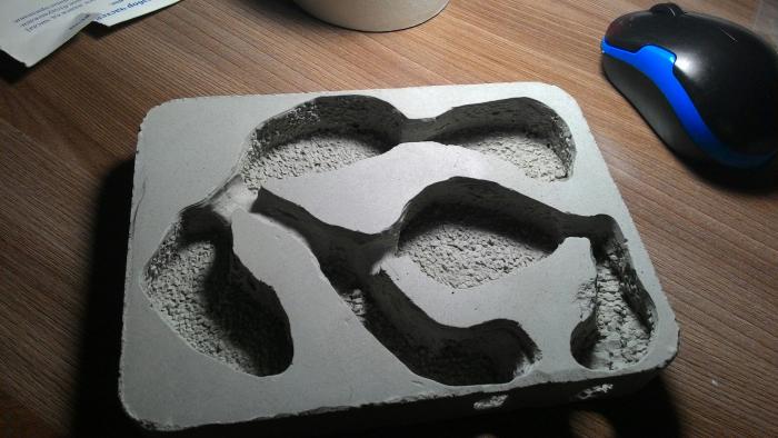 Если взять форму и засыпать её заподлицо гипсом, а потом этот гипс высыпать в какую-то ёмкость - это и есть примерное его необходимое количество для этой формы. Если пластификатор пока не используется - воды нужно 0,7 от объёма этого гипса.