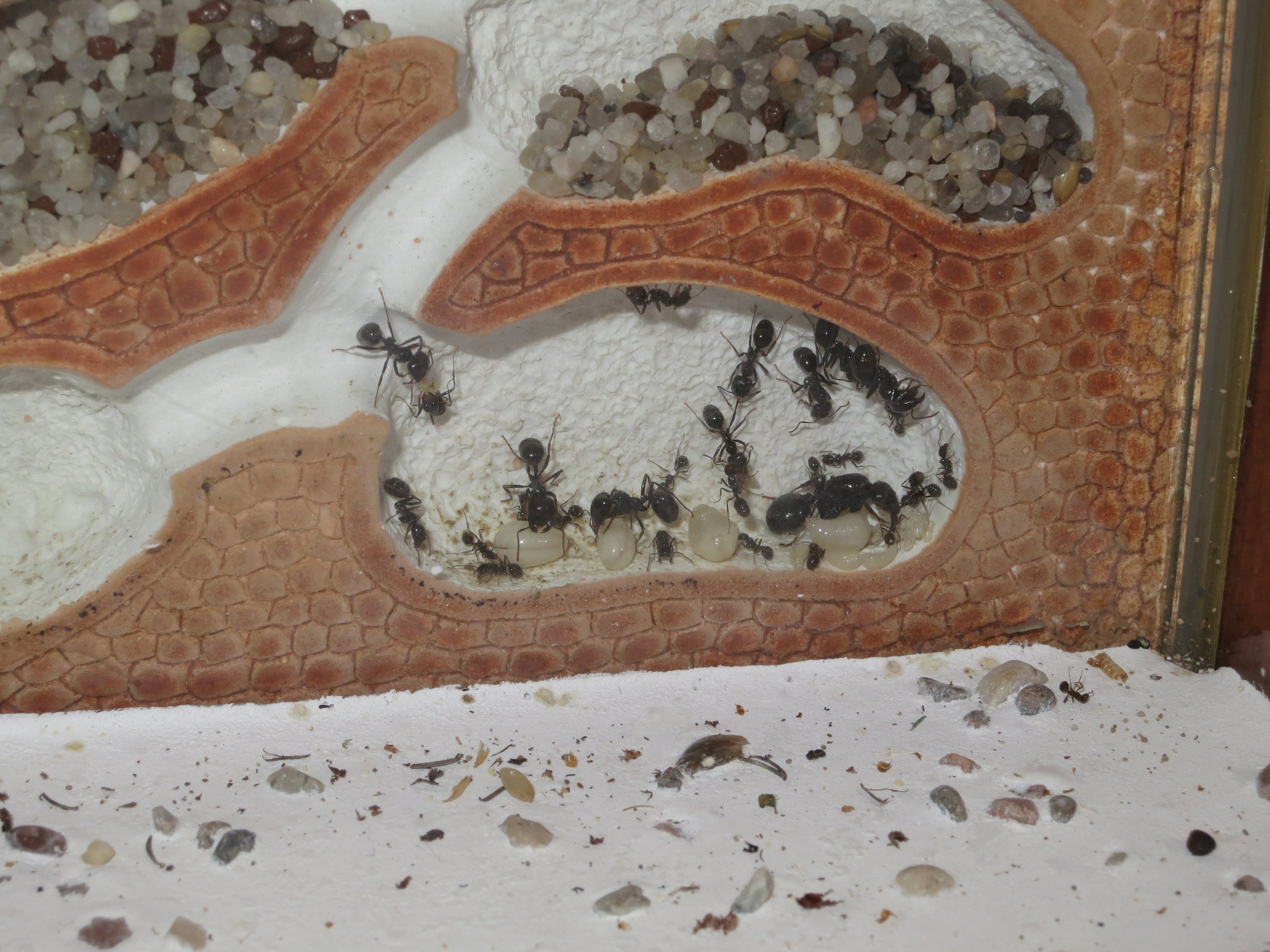 Совершенно случайно "открыл" простой и удобный способ уборки на густонаселённой арене. Просто подкладываю под неё термоковрик и включаю его на полную мощность. Муравьи постепенно эвакуируются в камеры. С помощью пылесоса и такой-то матери трубки убираю весь мусор. Даже уборка у "реактивных" ников теперь никаких проблем не вызывает. Раньше это было сущим наказанием.