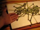 Стеклянная ферма размером 40х30х2 см. закрыта сверху крышкой вырезанной из пластика (вроде полистерол). Ферма соединена силеконовой трубкой с 3х литровой банкой с землёй в которой сообственно и были принесены муравьи. В крышке банки продделаны отверстия для вентеляции и вставлена ещё она трубка ведущая на арену. На арене поилка с сиропом, сделана из крышечки из под кетчупа внутри пластелином сделаны пологии берега, чтобы муравьи не падали в жидкость.