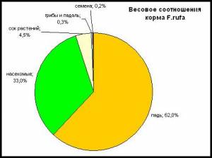 Велленштайн (Wellenstein, 1959, 1955) на основе 25-летних наблюдений дает следующие средние цифры За сезон одна средняя семья Formica rufa собирает 3—8 млн. насекомых, 200 л углеводов (преимущественно в виде пади тлей) и 40—60 тыс. семян.