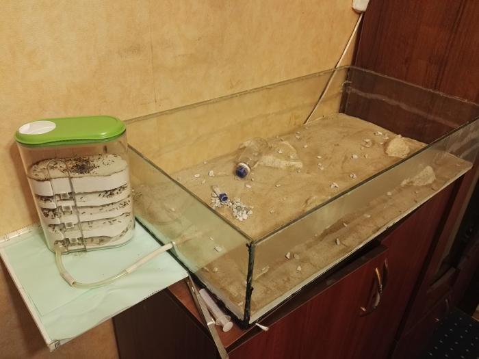Сейчас они живут в гипсовом формике, в платиковой таре для сыпучих продуктов. Мне нравится да и их устраивает вроде)