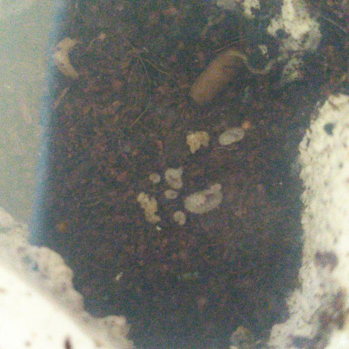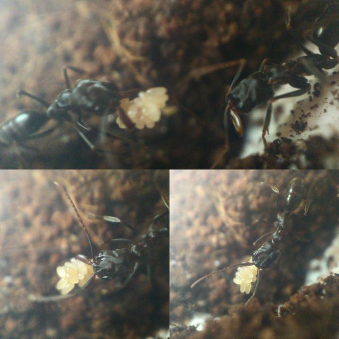 На удивление, коконы (в количестве 5 штук) перенесли транспортировку. Более того, матка их без каких-то проблем приняла. На настоящий момент убывший за счёт сухости пакет яиц начал опять пополняться, все пять коконов на месте - а значит живы, матка дохлятину из формика выносит достаточно шустро.