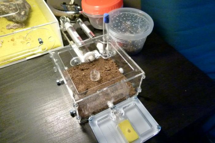 1. Это переселение муравьев в формикарий старт-1 от Володи ( Муравьи России и не только) по причине сильно загаженных пробирок и постоянного образования в них конденсата.