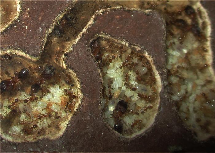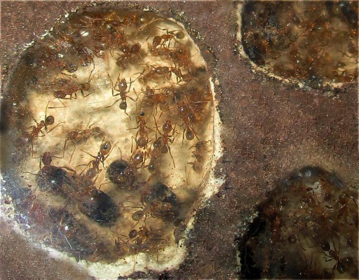 Часть камер заполненного формикария, из которого муравьи, ну никак, не хотят уходить.