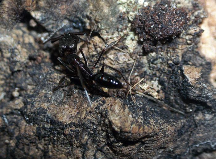 У второй матки, среди десятка рабочих тоже появился самец. Сидел тихонько на стенке в гнезде, а вчера вечером был обнаружен на арене в сопровождении рабочего. Вполне возможно, что рабочий его и вытащил на арену. Утром, после долгого осмотра арены и формикария, самец был обнаружен в формикарии.