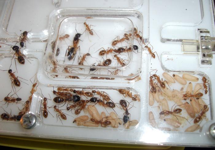 Camponotus grandidieri неделю не хотели переселяться из пробирки в деревянный формикарий, но в конце концов дружно перебрались. Тем более формикарий знаменитый http://antclub.org/node/3171 У Рафа в нем жили трункатусы, а у меня успели пожить кампонотусы леонарди.