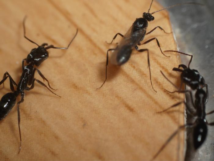 У Odontomachus simillimus вывелись несколько (5) самцов. Выход самцов замечал и ранее, куда они потом исчезают, может улетают, может погибают и их съедают.