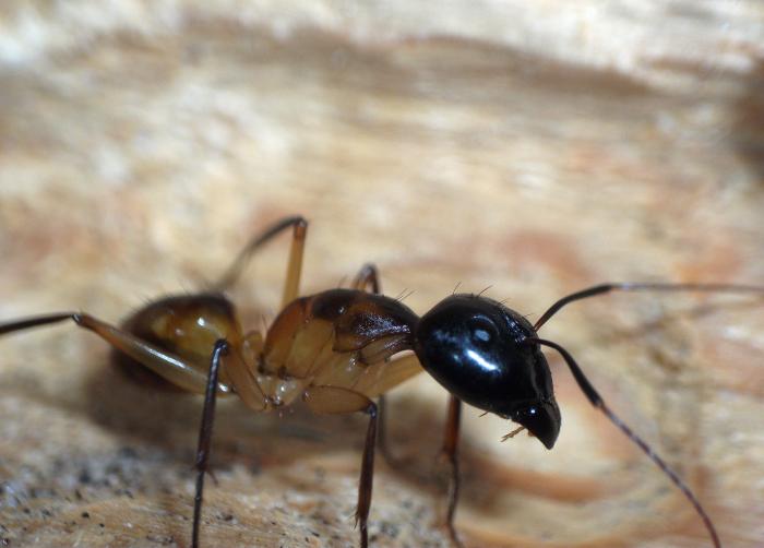 Camponotus grandidieri очень любят яблоки, высасывают их досуха, а частички даже утаскивают в гнездо и там доедают. В формикарии в объектив попала и убегающая от света матка.