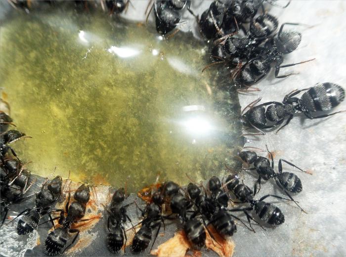 Camponotus grandidieri муравьи довольно спокойные и не агрессивные, стараются убежать и скрыться при малейшей тревоге. В гнезде всегда много приплоду. Как и все мои кампонотусы очень любят мед.