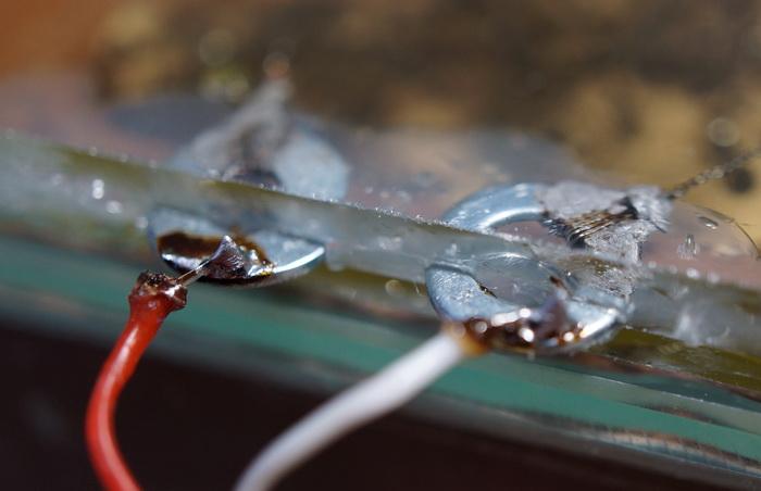 Толщина пакета равномерная. Я не описывал процесс сборки, счел это не интересным. По началу, устанавливается толщина пакета при помощи таких же шайб. Потом, частично делается силиконовая прокладка, шайбы убираются, вставляется проволока и контактные шайбы....