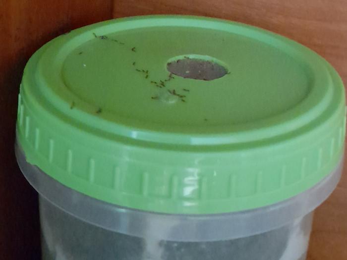 Сейчас на арене почти никого нет, интерес к сиропу практически отсутствует. Во вторник планирую занести формикарий в комнату, а ещё через пару дней положить под деревянный модуль термоковрик.