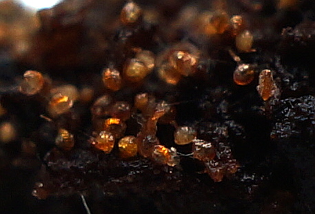 Давно хотел попробовать вырастить папоротник из спор. Не так давно представился случай получить ваи со спорами от c десяток разных видов. Расселил все в разные контейнеры на вареный кокосовый субстрат. На сегодня уже заметно, что споры приподнялась прорастая. Фотографировать сложно. Макорообъектив+макрокольца. Перевертыш прикрутить не чем ((. Два фото спор другого вида: