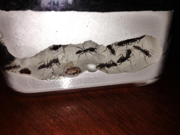 Все-таки я решился взять на себя ответственность и завести себе одну колонию панероморфов, ими стали Odontomachus monticola. Муравей приятно поразил размерами, все были больше сантиметра. Приехала колония в формикарии, из которого все муравьи были переселены в мой самодельный, который мне больше подходил по размерам, да и в старом уже была плесень. В колонии был кокон, пару личинок и пакет яиц. Самка выгодно отличается от своих собратьев размерами и немного окрасом. А вот их знаменитую силу мандибул сразу проверил маленький сверчок, который был сразу же с аппетитом употреблен. первые 2 фото- старый форм, а следующие- новый форм.