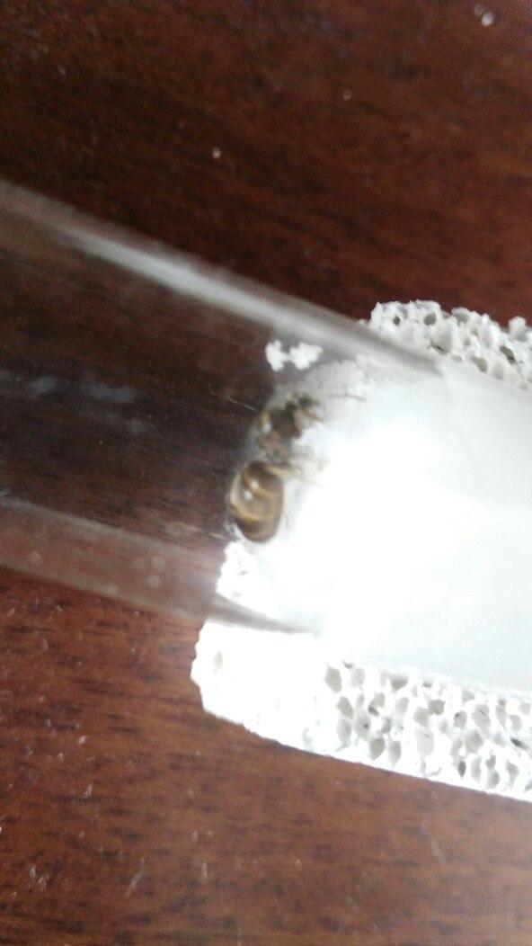 Всего у меня 2 матки. 1-ая матка(в длинной пробирке) отложила яйца во вторник, а 2-ая в понедельник. Все живы, здоровы, но 2-ая матка немножко странно себя ведёт: грызёт ватку. За эту неделю у меня возникло несколько вопросиков: