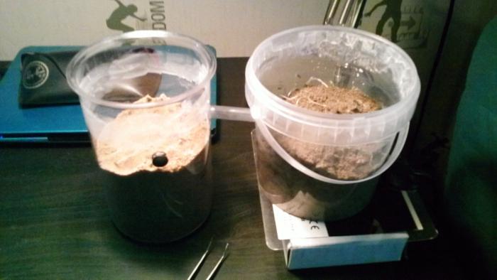 Пропалывая на даче грядки мне повезло наткнуться на семью мирмик в корнях сорняка. Оценив ситуацию понял что колония не сильно крупная, но и не сильно маленькая. Сгоняв в дом я схватил прозрачное ведерко из под квашеной капусты, наполнил его песком на половину и вытряхнул из корней растения семейку. Когда рыжие ребята выкопались из под толщи земли я смог насчитать 7 маток и 4 самца. Позднее их ждала транспортировка в город (где их в очередной раз засыпало) и трата моих нервов. Дело в том что для кормления и какой-либо уборки нужен доступ на арену, а при открытии крышки все разбегались (когда мирмик много то побег это катастрофа). Разведя детскую присыпку со спиртом и вооружившись кисточкой я провел целых 10 минут радости и веселья. Первым этапом было намазать антипобег и отлавливать муравьев. Вторым этапом было ловить муравьев пока сох антипобег и наконец просто отлов муравьев по столу, полу и вообще квартире.