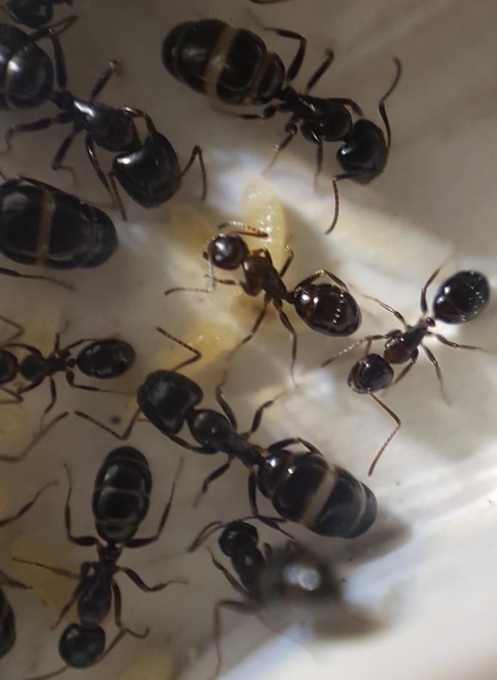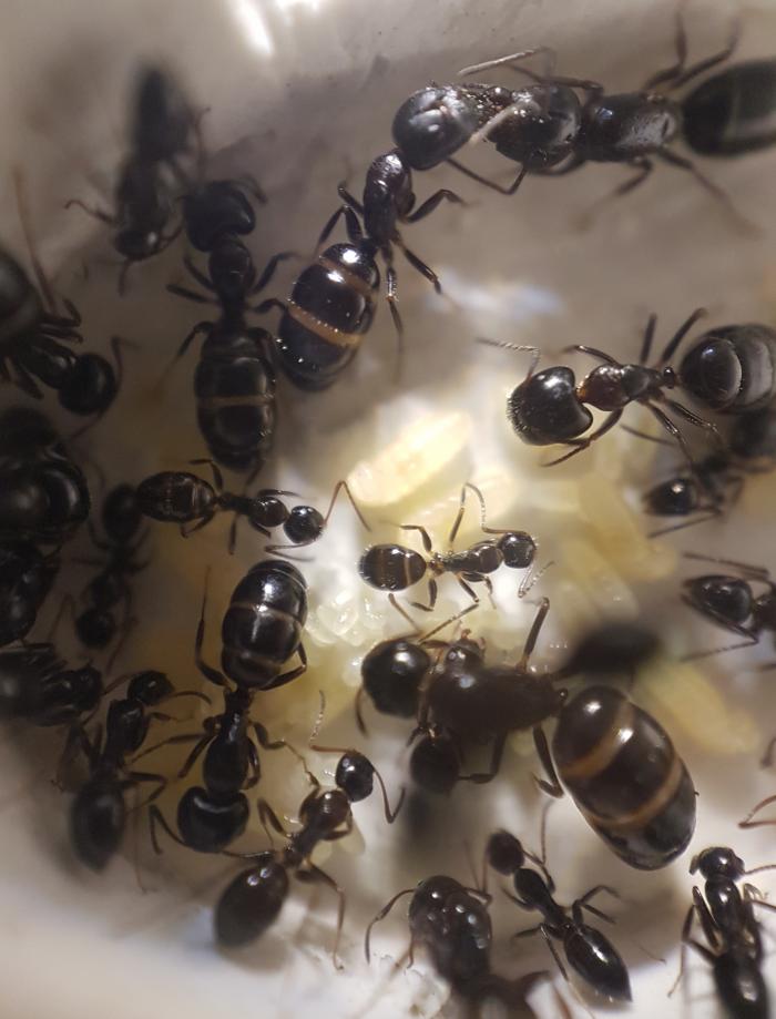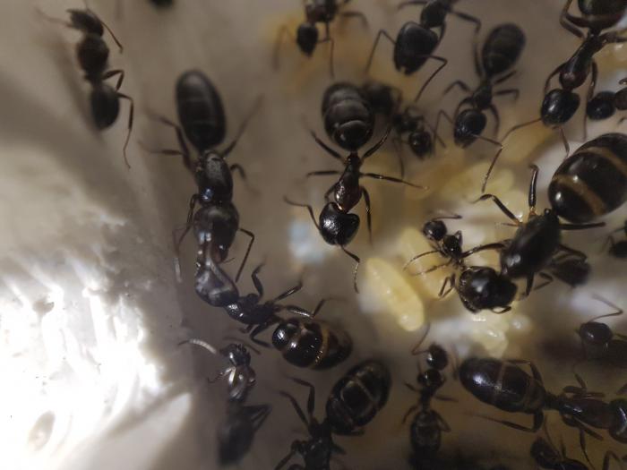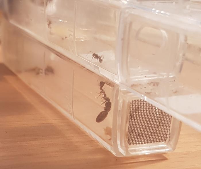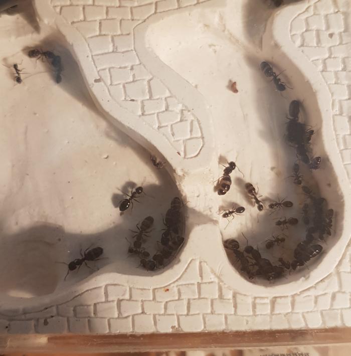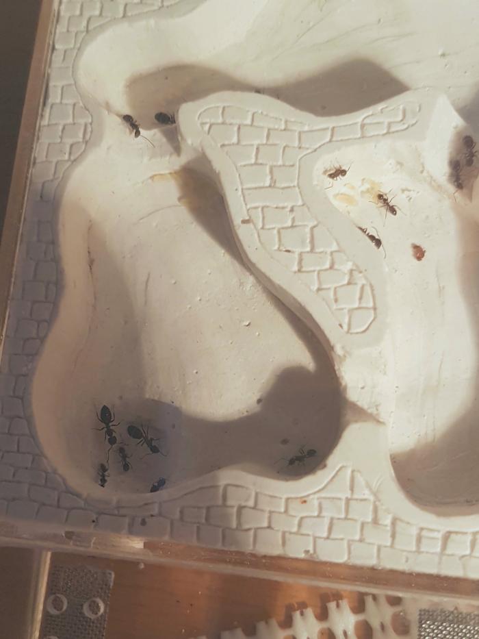 Как показал эксперимент, моей колонии токиоенсисов, очень понравился мини-форм. Появилась активность, увеличилось число расплода, муравьи, стали активно потреблять белок. Чего ранее не замечалось. Начали проевляться черты этого вида. На входе в форм дежурят солдаты. Да и вообще, колония заметно поменяла поведение.