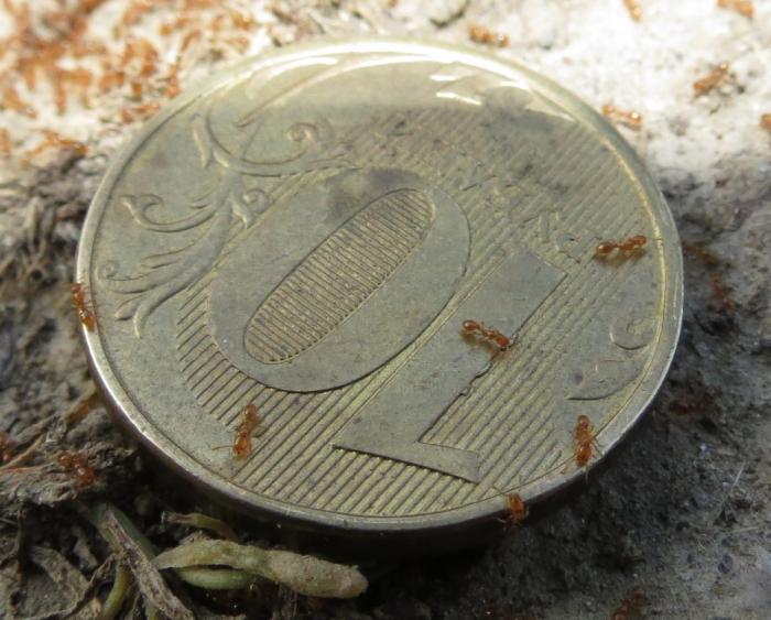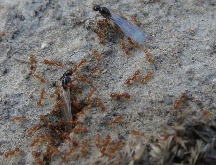 28 августа, вечером, обнаружен очень мелкий вид муравьев. Несколько принцессок пытались улететь, а рабочие их от этого всячески отговаривали и всеми способами пытались загнать упрямых девиц домой. Но, по крайней мере, двум особенно упертым удалось от них упорхнуть. Рядом были гнезда каких-то лазиусов и сервиформиков.