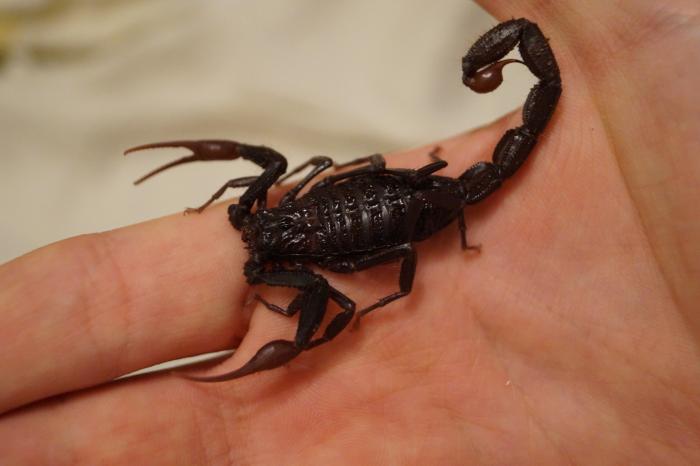 Но ничего страшного в итоге не произошло, я подставил руку и скорпион спокойно пополз по ней вверх остановившись в итоге на ладони. Заодно решил его сфотографировать для масштаба.