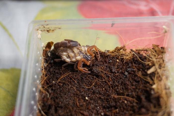 Один из новоприбывших Lychas mucronatus решил порадовать меня и полинять.