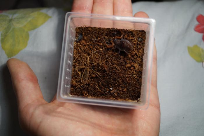 Как я уже говорил выше у меня погибли почти все месобутусы, кроме одного одинокого самца. Позавчера я, наконец, раздобыл ему самку которой безвозмездно поделился со мной коллега, которому я за это очень благодарен.