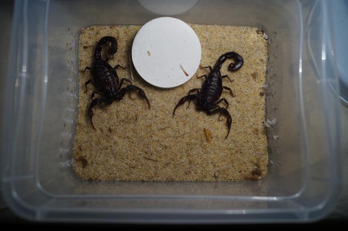 Только что ко мне приехала пара скорпионов Centruroides gracilis, обе особи 5 линьки.