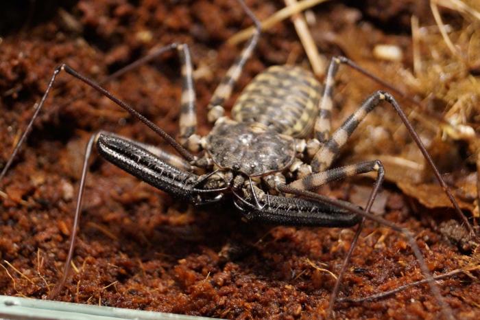 Ну очень красивые животные с крайне интересной морфологией. Даже для меня, много повидавшего кипера, они выглядят довольно необычно. Особенно строение педипальп и передних ног. Еще очень удивило то, что дыхальца находятся на тергитах сверху брюшка, а не на стернитах, как у практически всех остальных паукообразных.