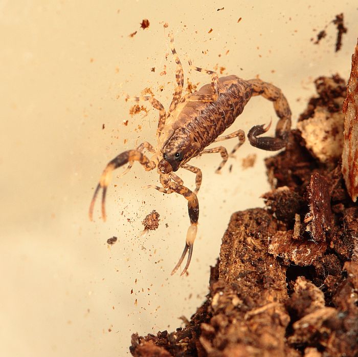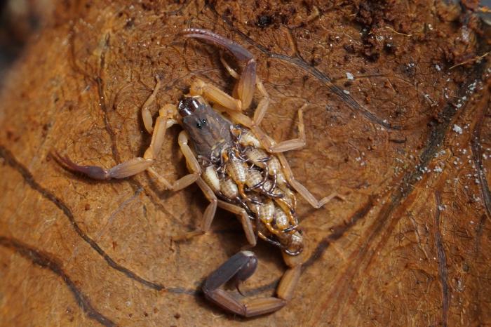 Вчера заглянул к самочке Lychas scutilus. Некоторые малыши уже были L1, некоторые еще линяли, а некоторые сидели нимфами. Я не стал мешать процессу линьки и решил сфотографировать сегодня, когда все перелиняют и немножко окрепнут.