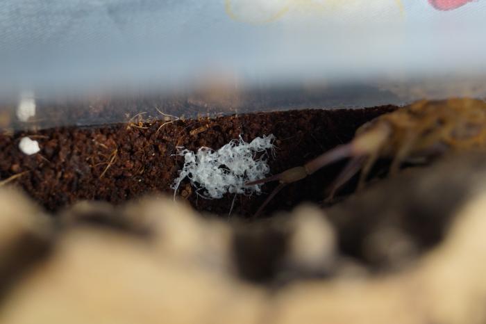 И подумав "Хм... Чета тут не так..." я спонтанно решил их ссадить. И они ссадились и успешно спарились, чему свидетельствует сперматофор и то, что скорпы сидели по разным углам.