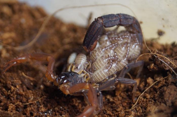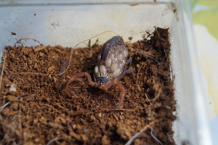 Ее спина была облеплена маленькими и очень активными скорпиончиками. Очевидно, малышня вышла в L1 еще вчера.