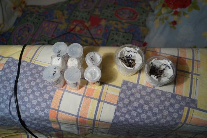 Сразу же после подсадки самец начал "дрожать" и начал искать самку. Как только он ее нашел они сцепились и уже спустя 10 минут на коре был сперматофор.