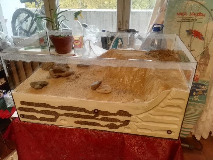 Формикарий с засыпанными камерами удобен при заселении в него небольшой семьи.