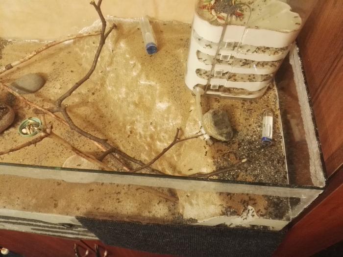 Единчтвенный минус, что камушки чуток утрамбовались и сперху образовались маленькие проходики, через которые мураши естественно сразу полезли во все углы... Ну чтож поделать, пускай и там копают.