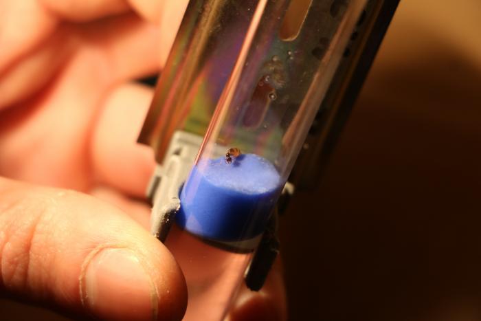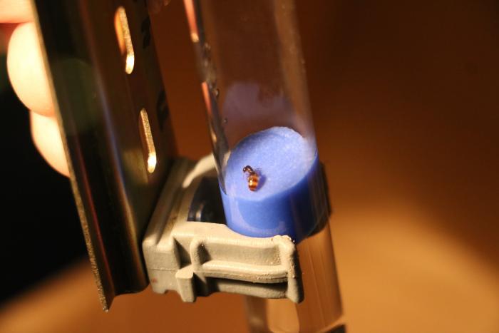 Отловлены были 4 сентября 3 матки. Через почти 1 месяц содержания заметил у первой матки несколько яиц (около 5-7), у второй матки ничего (она на фото , ибо только она и смогла нормально позировать для фотосессии )))), а у третьей пара. Подкорм в виде капли разбавленного мёда , выпили все с превеликим удовольствием ( остатки удалил ). На данный момент , матки без изменений обитают в пробирке на губке в оберегании своих яиц.