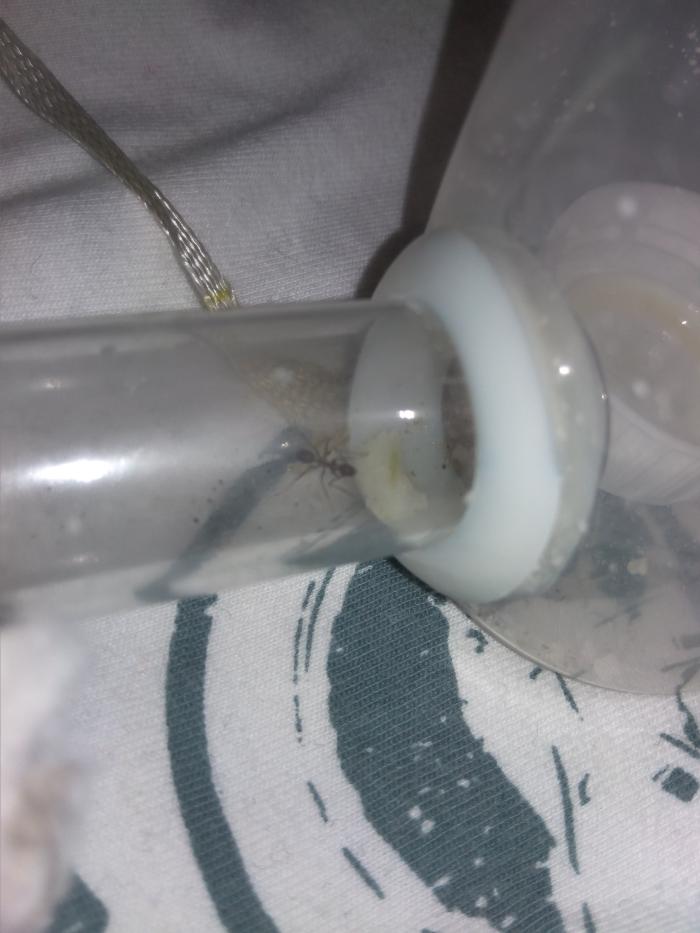 Появилась эта колония у меня 27 июля этого года, благодаря магазину ANTaha.Приехали в составе Матка+7 рабочих+4 личинки,вовремя переселения умер один рабочий и личинка.(опыт как-никак)В конце августа появились 3 рабочих.