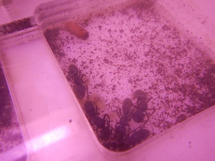 Продаю две колонии пожарных с формикарием 3000 рублей за всех. Одна производит крылатых самцов и живёт в формикарии, состоит из 13 человек и одного крылатого самца с яйцами и тремя коконами, другая производит крылатых самок и там примерно 4 человека, яйца и коконы.