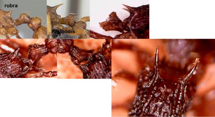 Тут мы видим, что впадины вокруг усиков, несколько более выражены у ругинодисов чем у рубры.
