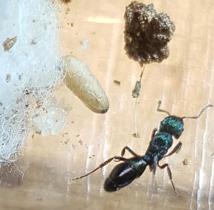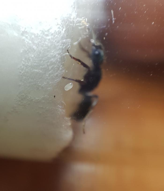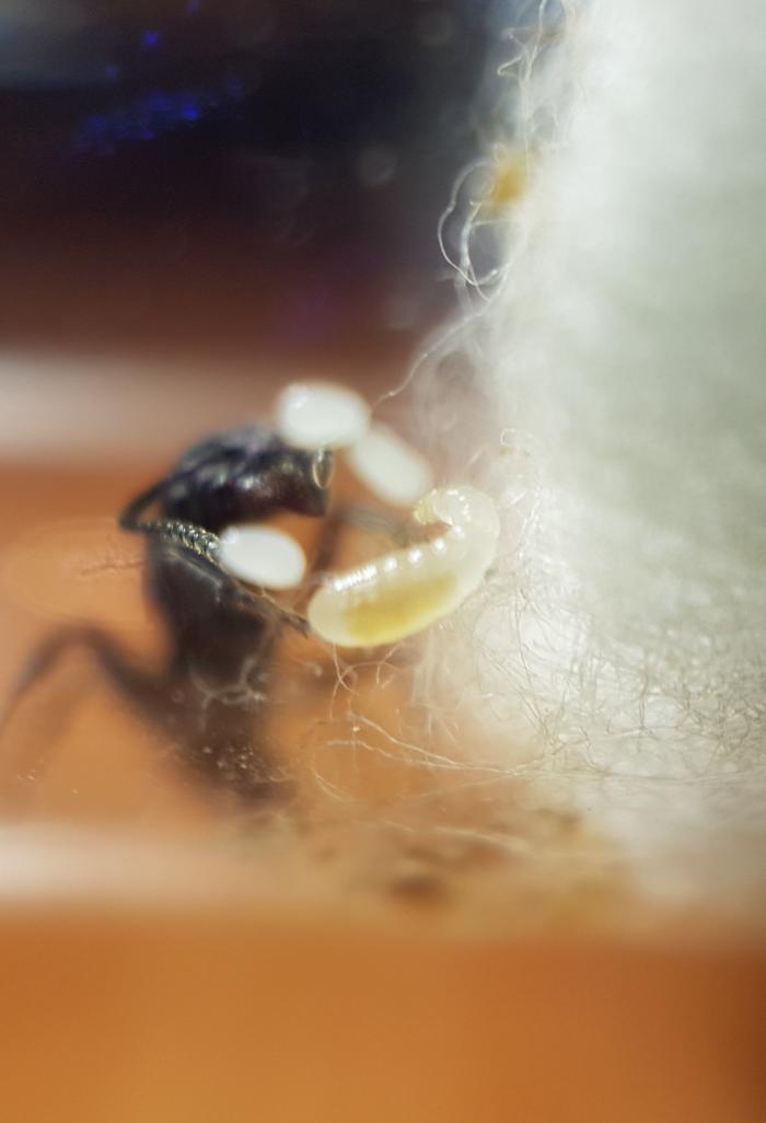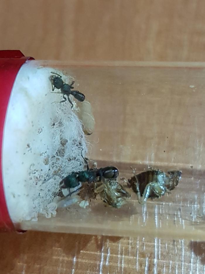 Капля сиропа уходит на ура, а личинки знахаря активно съедаются подрастающих поколением. За это время появились новые кладки, а старые переросли в личинки. Ждём первого рабочего...