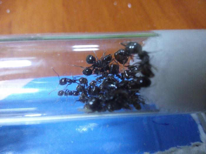 М-да, может я выдал желаемое за действительное? Это я о яйце. Но четко видел, как один муравей держал яйцо. Может ошибся(((. Сейчас они все время кучей сидят на ватке. Сколько ни смотрел, яиц не вижу.