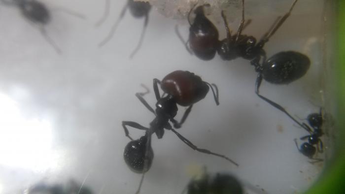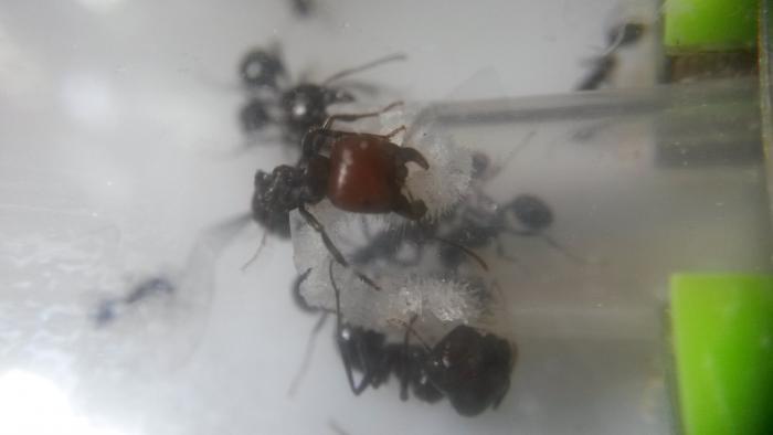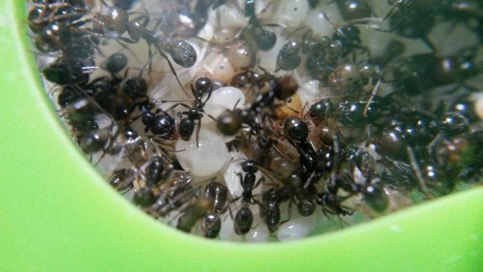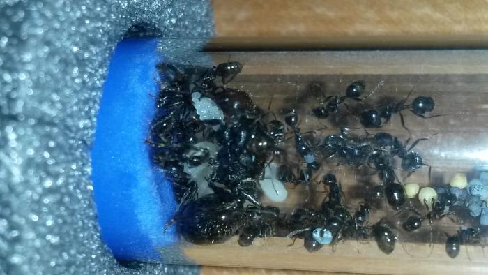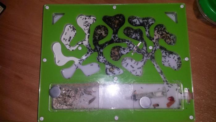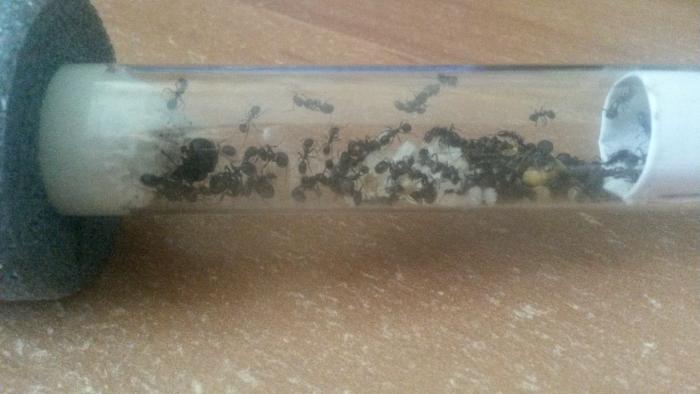 В мае решила, что уже можно заселять в формикарий, но попытка была неудачной- отчего-то сразу после переселения вымерла половина колонии..питание не менялось, влажность и поилка присутствовали, но муравьи вели себя "неадекватно", бросались друг на друга и рвали на части((