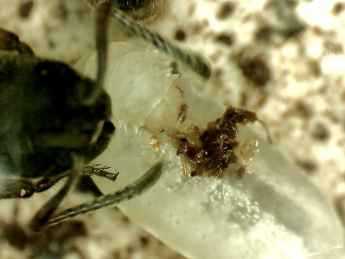 Знал, что личинки муравьев линяют, но первый раз увидел это на примере пожарных. И еще обнаружил, что у личинок есть глаза, и довольно смешные)))