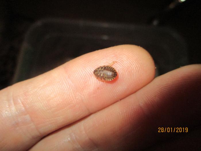 Одновременно с тараканами и белыми мокрицами мне ещё достались крупные серые тропические мокрицы, сворачивающиеся в шарик. Поначалу они неплохо размножались, но когда тараканов и белых мокриц стало много, серые почти исчезли. Думаю, не выдерживали конкуренции. Сейчас пытаюсь возродить их в отдельном контейнере с кокосовым субстратом и половинкой кокосовой скорлупы, под которой они прячутся.