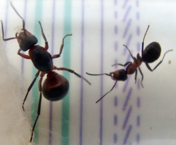 к муравьям вообще они у меня дружелюбны, когда подселял убитую матку к 15 примерно тогда рабочим, они были калеками почти все, потоптали друг друга в пробирке, измазались в намоченном мною с дуру зефире, короче это был госпиталь больше.