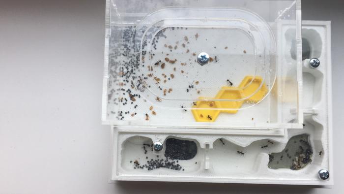 Формикарий "Лего". Формикарий изготовлен методом 3d печати, что исключает цветение и появления плесени. Также из плюсов стоит выделить модульность конструкции, легко соединить дополнительные секции или арены, если ваша колония будет в том нуждаться. Акриловая пластина прикручена болтами, что исключает возможность ее выпадения или создания щелей. Одним из наибольшим преимуществ этого формикария - система увлажнения, какой нет аналогов в Украине:) Она представляет собой очень мелкую металлическую сетку (толщина "волокна" меньша чем человеческий волос, то есть ни какой вид муравьев через нее не пролезет) через которую попадает влага (из нежнего резервуара, где размещен гидрогель)., что позволяет иметь высокий коэфициент увлажнения, а как известно из главных факторов для большинства муравьев является присутствие влажного воздуха. А через специальные "окошка" вы всегда сможете наблюдать за уровнем влажности.Также благодаря арене вы с легкостью можете обслужить мурашей, и наблюдать за тем, как они добывают еду, охотятся.
