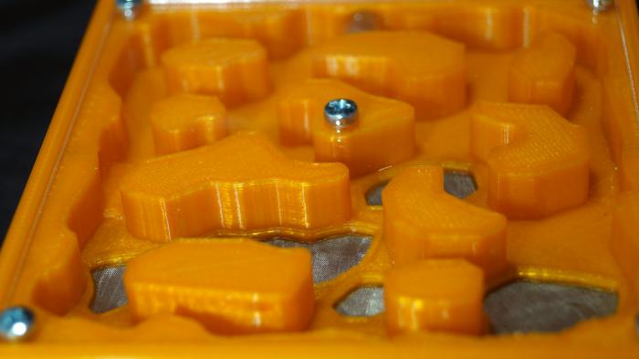 Формикарий "Таун". Формикарий изготовлен методом 3d печати, что исключает цветение и появления плесени. Также из плюсов стоит выделить модульность конструкции, легко соединить дополнительные секции или арены, если ваша колония будет в том нуждаться. Одним из наибольшим преимуществ этого формикария - система увлажнения, какой нет аналогов в Украине:) Она представляет собой очень мелкую металлическую сетку (толщина "волокна" меньша чем человеческий волос, то есть ни какой вид муравьев через нее не пролезет) через которую попадает влага, сбоку можете увидеть гидрогель, роль которого увлажнять формикарий.