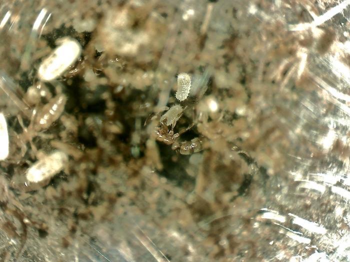 На пятой фотке видны куколки. Личинки не самостоятельны, рабочие кормят их, отрыгивая пищу.